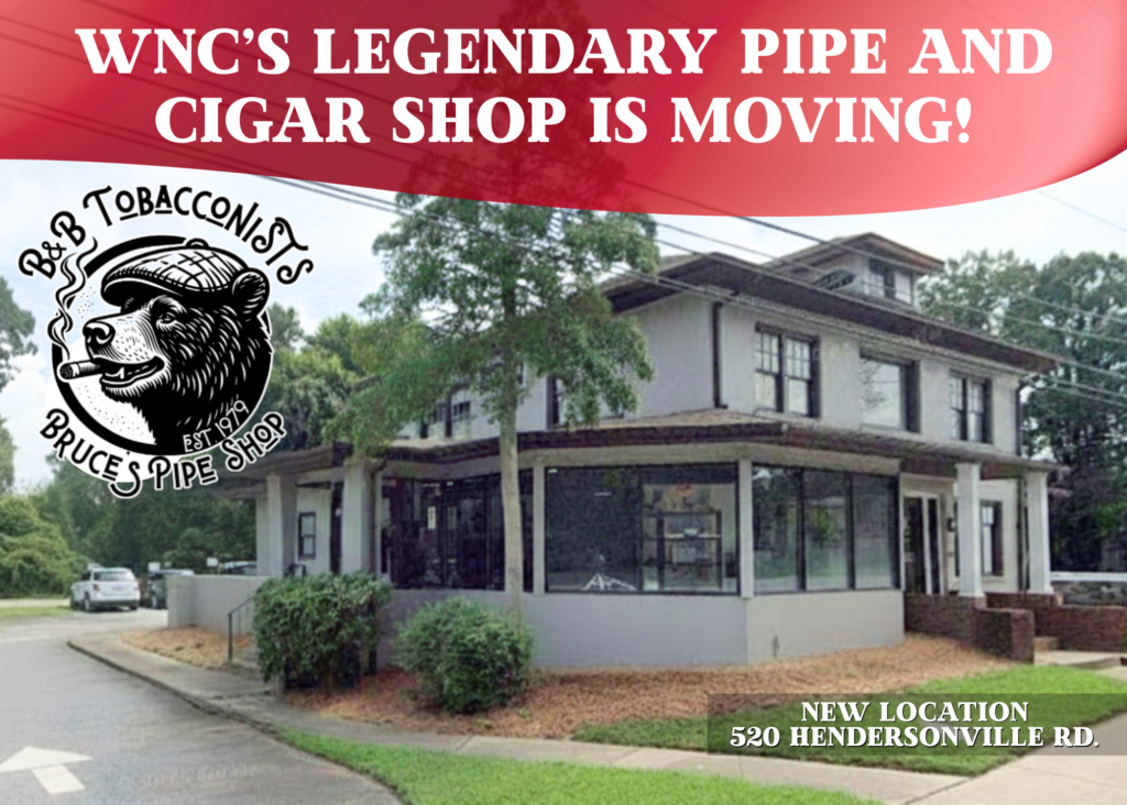 B&B’s new location will be 520 Hendersonville Road. Same street. Same distance to town. But we’ll have a bigger space, more parking, an expanded humidor and pipe shop, a back deck, the lounges you love, and coffee next door.